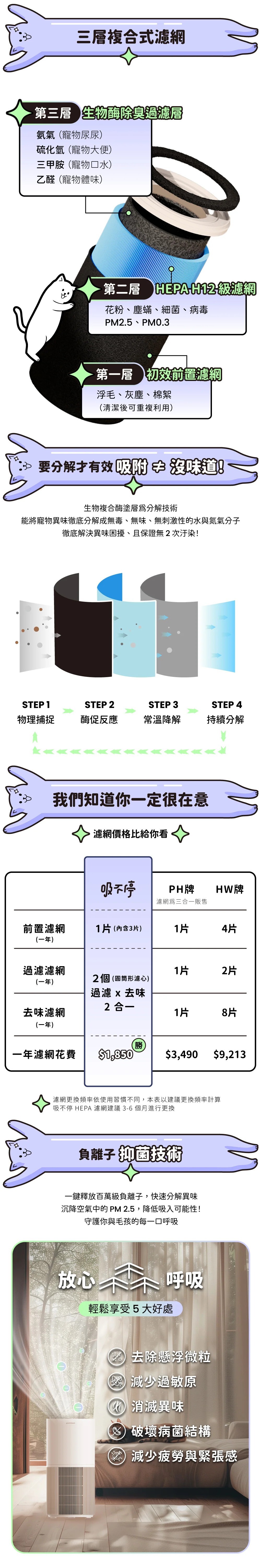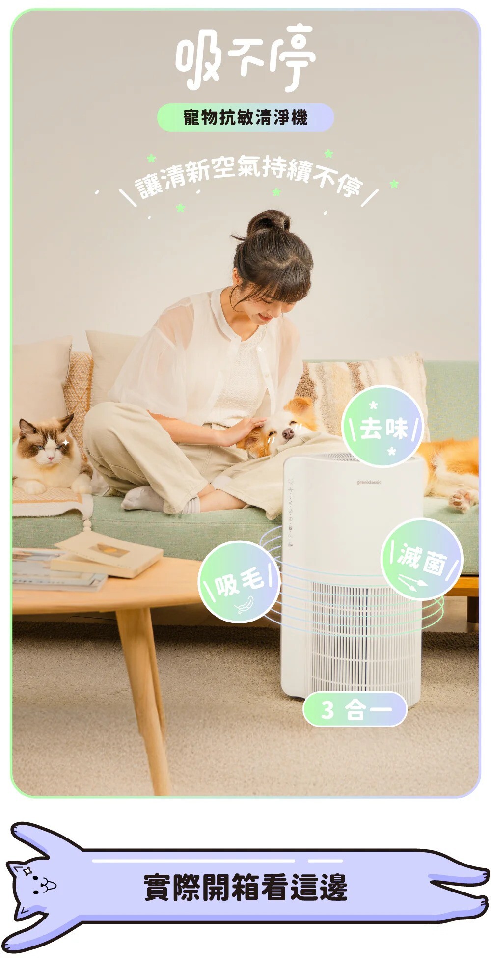 ✨三層淨化x超大風量,一次打擊浮毛、異味、過敏原