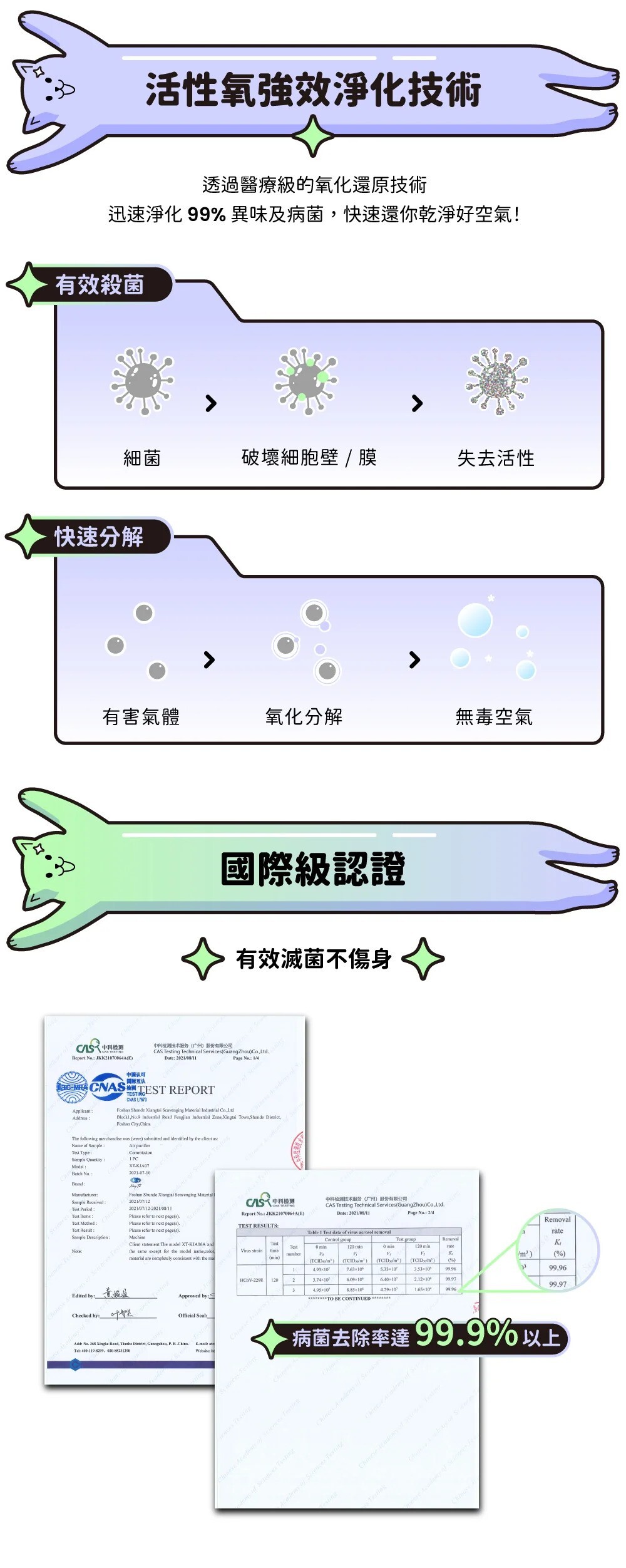 ✨三種淨化模式選擇,活性氧、負離子淨化再進化