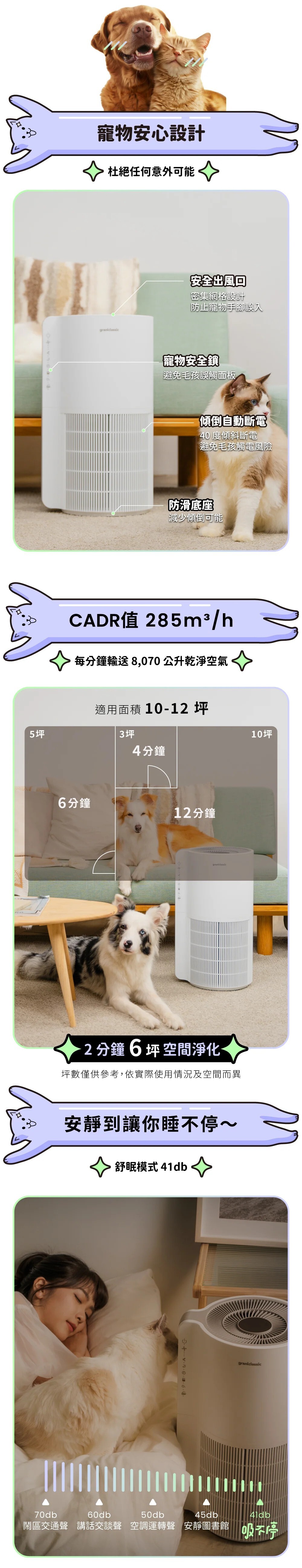 ✨ CADR 285 m3/h,10-12 坪空間適用
