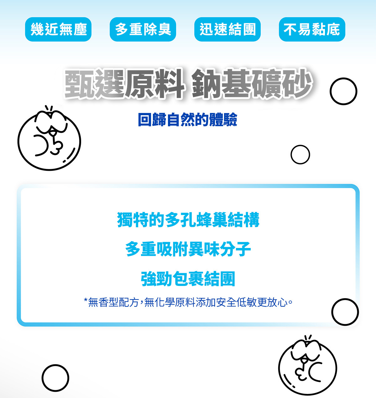 ✨鈉基礦.獨特蜂巢結構加速吸臭、快速結團