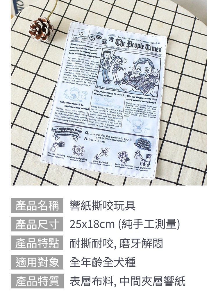 ✨懷舊仿真報紙耐咬玩具,柔軟安全無異味