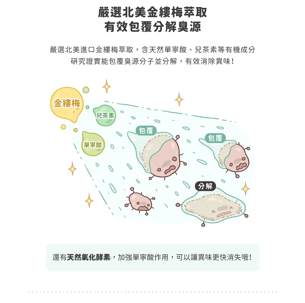 ✨植萃成分 + 天然酵素,快速包覆分解臭源